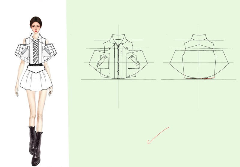 Technical drawings require precision, clarity, and attention to detail. Each line, seam, pocket placement, and button must be depicted accurately to ensure the design can be constructed exactly as envisioned. It’s not about creativity here but rather translating the design into a clear, professional blueprint.