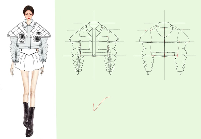 This week felt like a big step forward as I worked on finalizing my technical drawings. After weeks of sketching and making adjustments, it was finally time to show them to JR to approved. It wasn’t easy every line, seam, button, and detail had to be perfect.