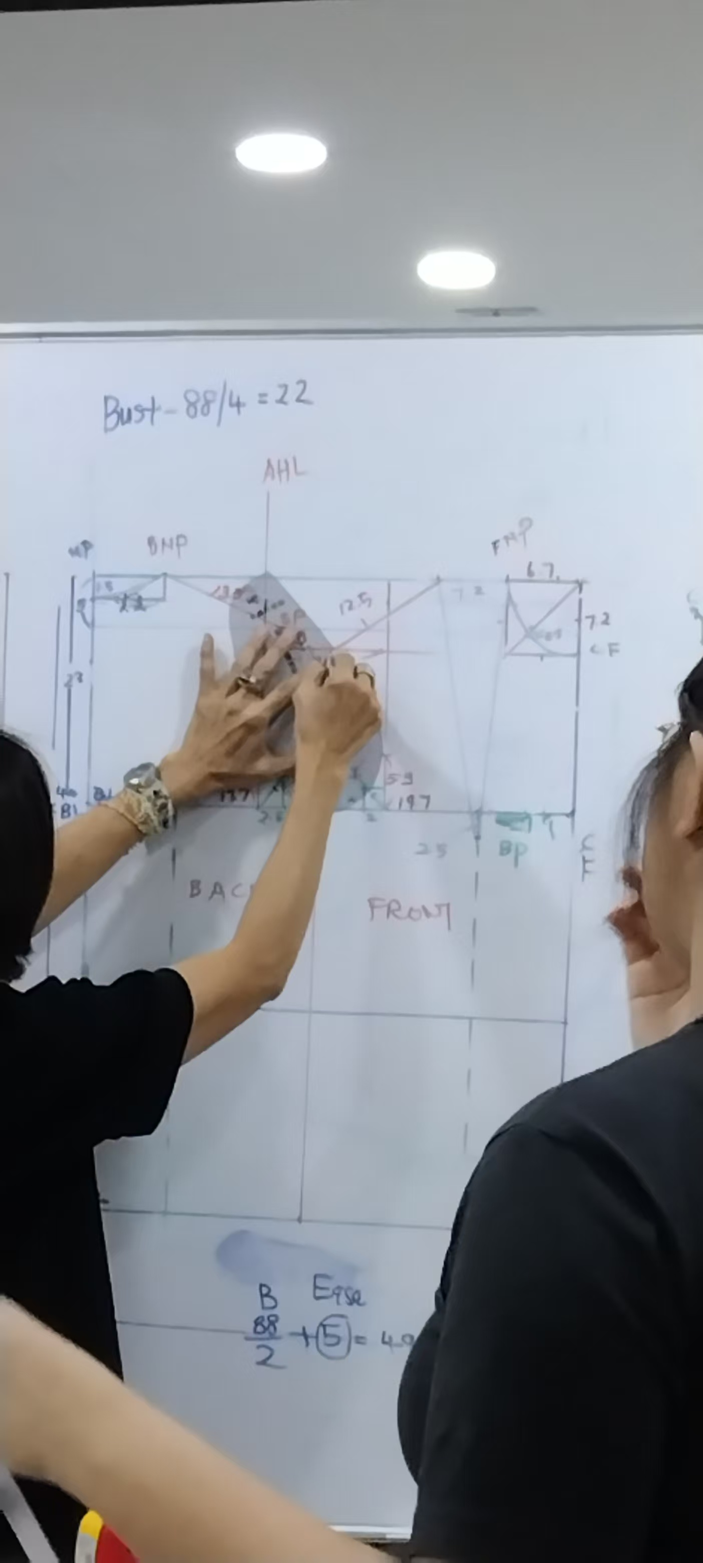Next, we worked on the bodice block, which was much more complex. It involved plotting the neckline and armholes with great precision. Following Ms. Melina's instructions at her fast pace was difficult, and I struggled to keep up at certain points. However, I pushed through the confusion and completed the task. I was relieved that I managed to complete both the skirt and bodice blocks, especially since the process felt overwhelming at first.