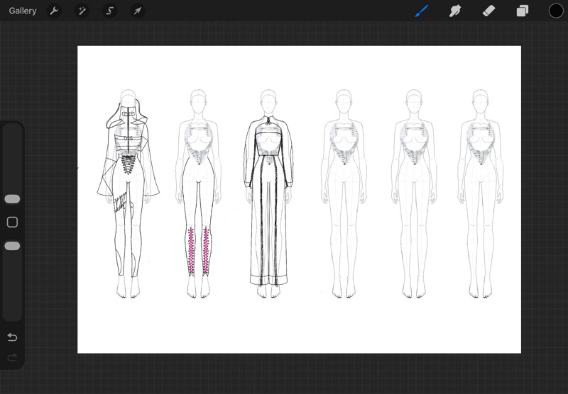 I completed all of my draping pieces this week. With the drapes done, I began compiling it for futher steps into the initial sketch ideas. Seeing the drapes together gave me a little clearer direction for silhouette development and how the Converse materials can influence the structure of my designs.