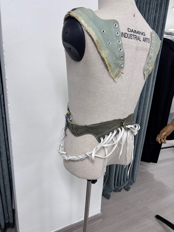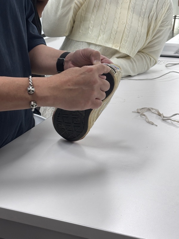This week, Mr. Daniel briefed us on the MIB for Fashion Project 2, focusing on our collaboration with Converse. The main task is to design two full sets of pre sports street style outfits, each consisting of a jacket, an inner piece, and a bottom. Before designing, everyone must begin by draping with Converse shoes. We were asked to take several pairs of old Converse shoes, disinfect them, fully deconstruct them, and use the materials to drape on the mannequin. This hands-on exploration helps us understand structure, form, and how the Converse identity can be interpret into outfit. The only struggle was the condition of the shoes they were extremely dirty, and I had to wash them three times with dettol just to get rid of the dirt.